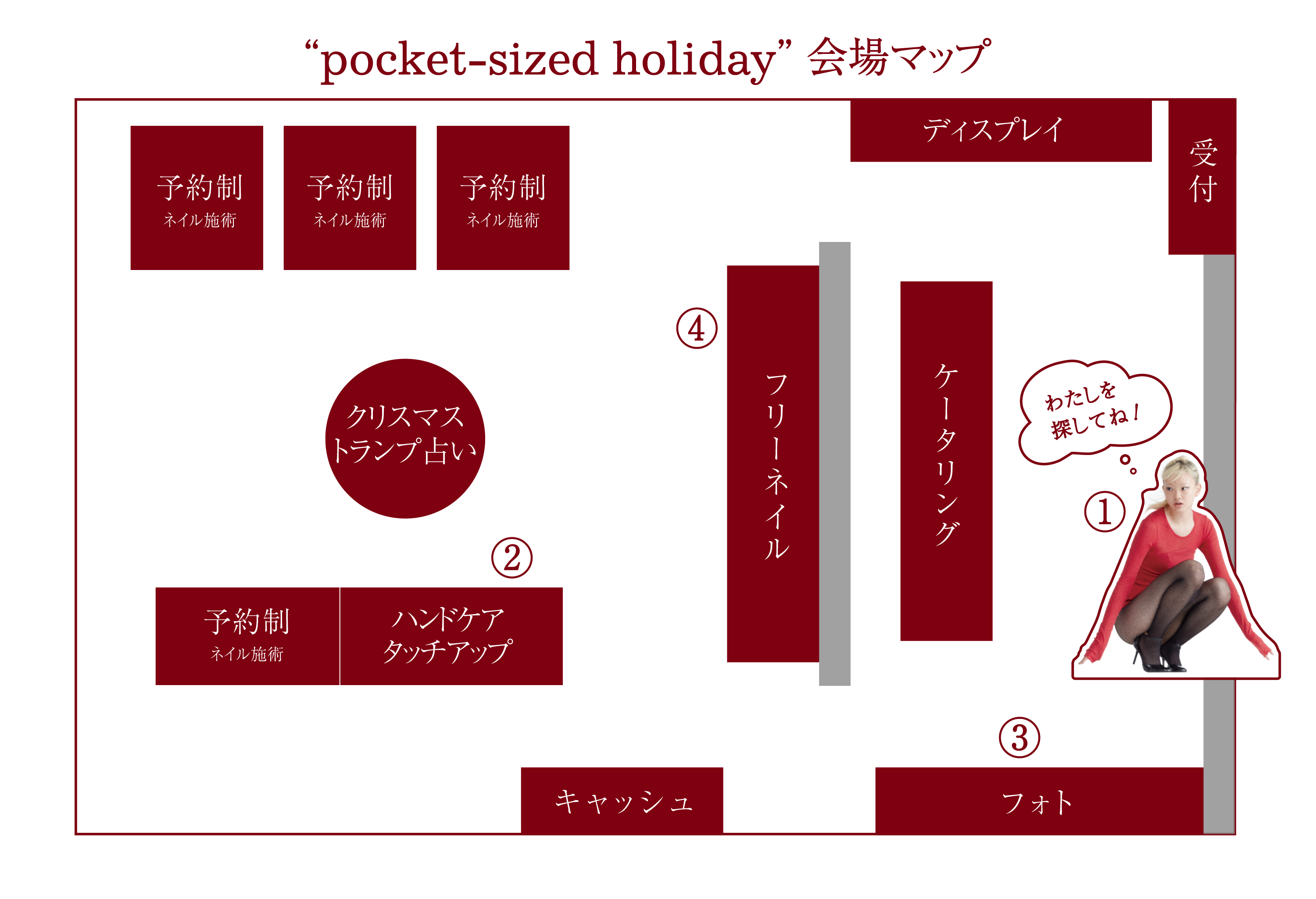 会場のどこかに、赤い服を着たフェアリーがひっそりと隠れています。